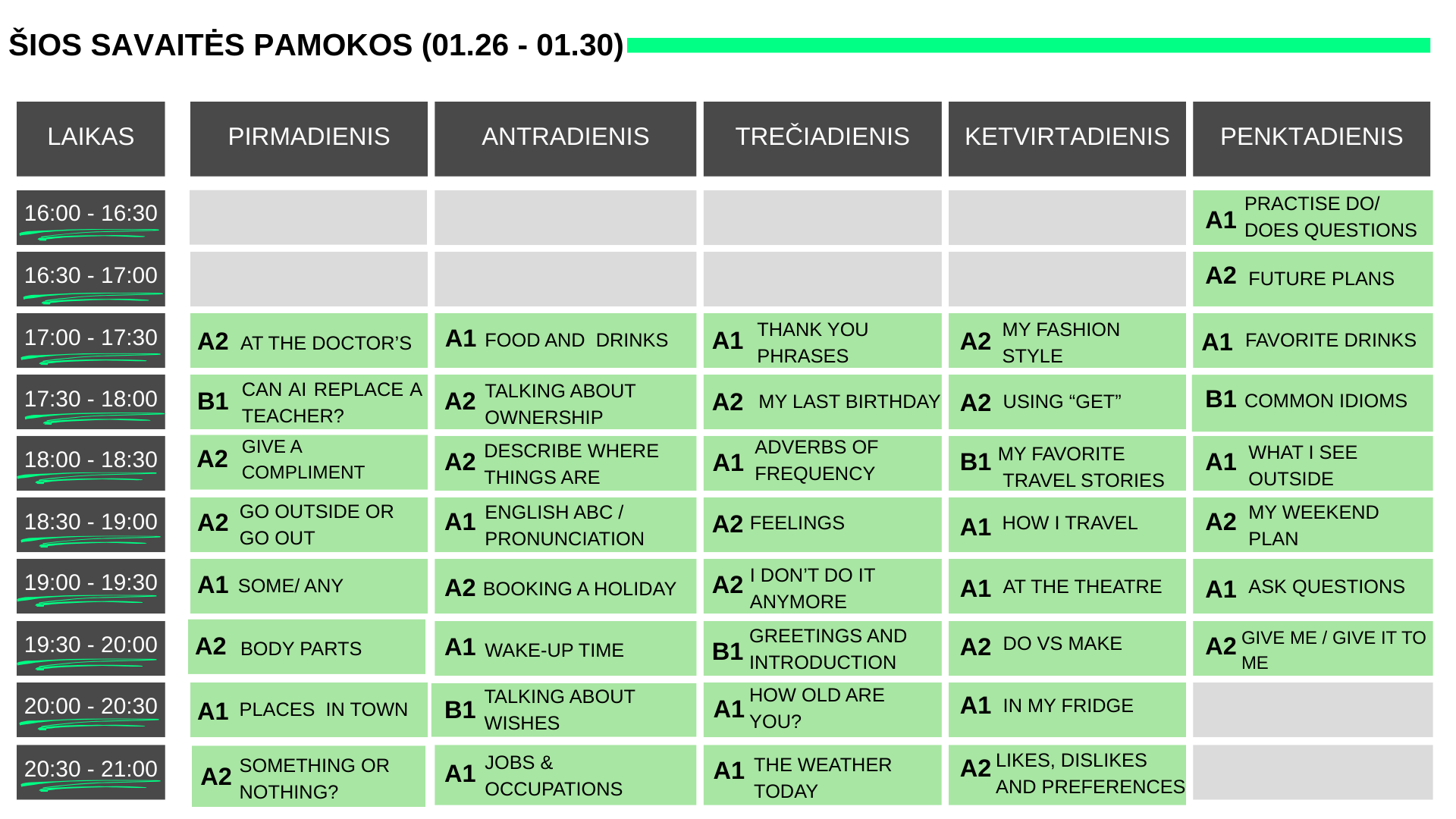 Kiekvieną sekmadienį gauni naują pamokų tvarkaraštį