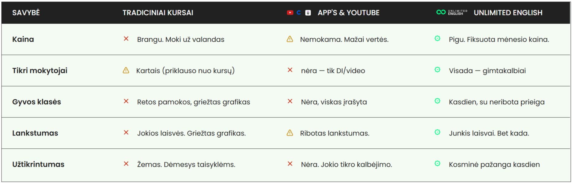 Kuo Unlimited English skiriasi nuo kitų mokymosi būdų?